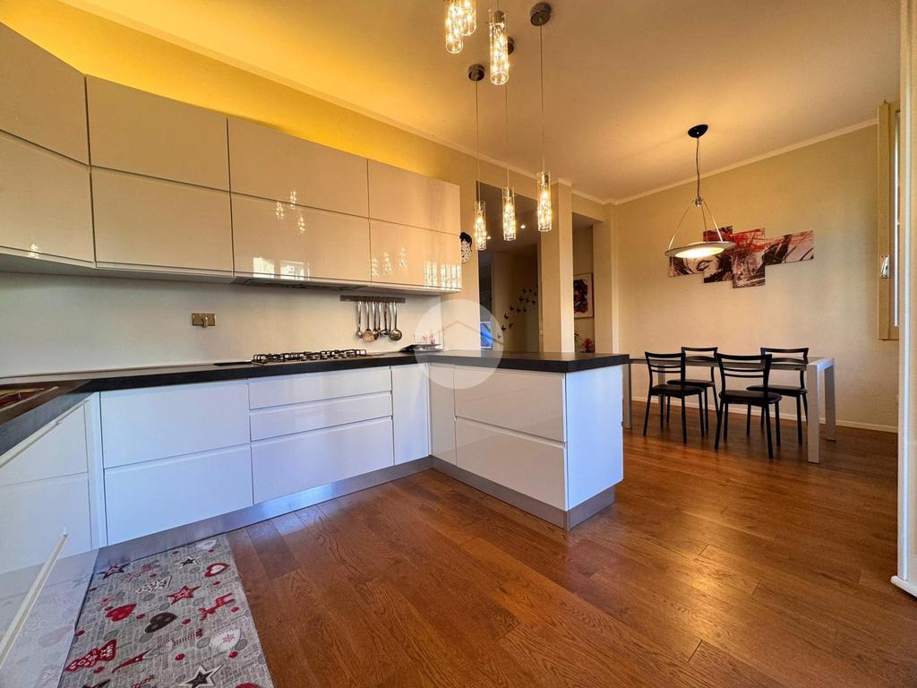 • Cucina abitabile, moderna e funzionale, con uscita su un secondo terrazzo sul retro, parzialmente verandato e perfetto come zona lavanderia o spazio relax;