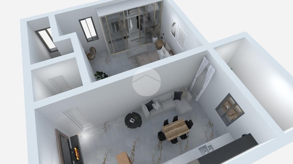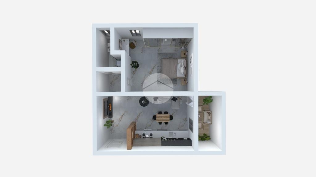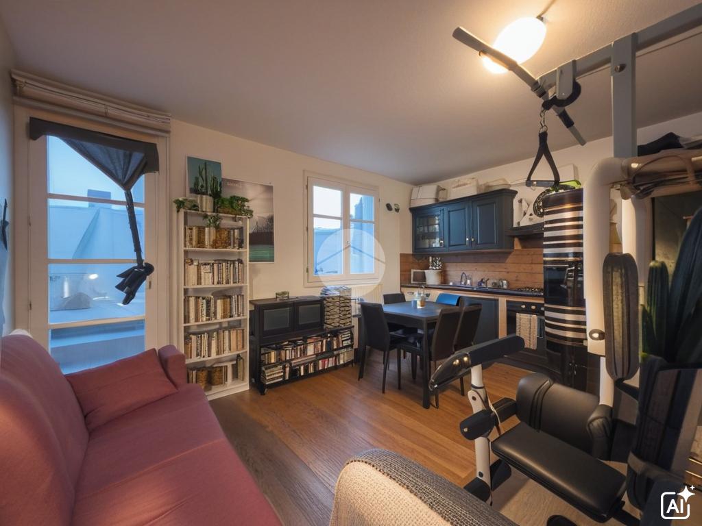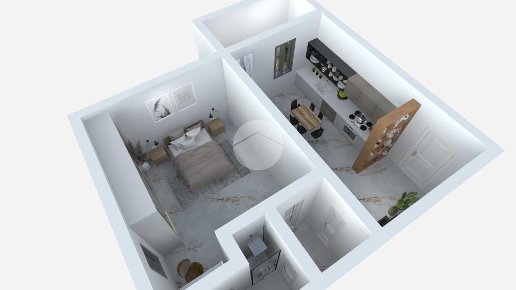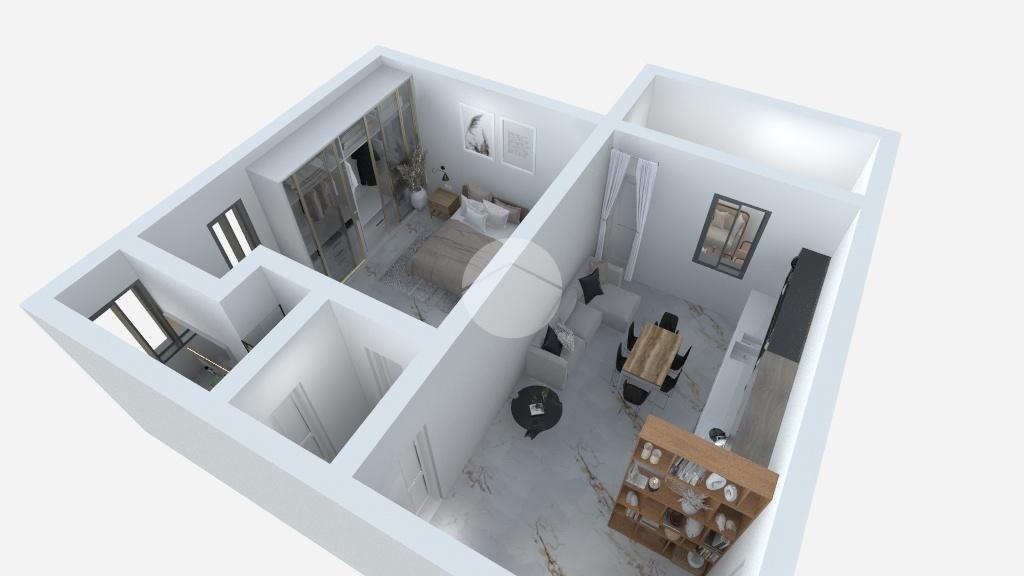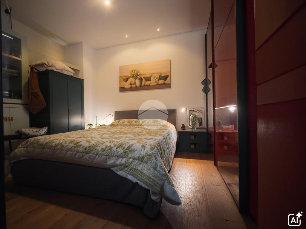 L’appartamento si compone di una zona giorno open space con pratico angolo cottura e area living, con accesso diretto al balcone, perfetto per momenti di relax.