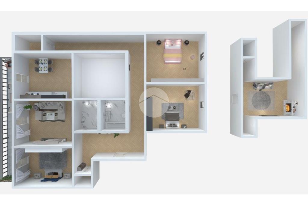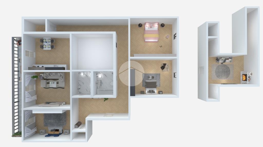 Dal soggiorno, tramite una comoda scala interna, si accede a una grande mansarda, versatile e accogliente, attualmente utilizzata come zona relax, con possibilità di realizzare un terzo bagno o uno spazio indipendente.